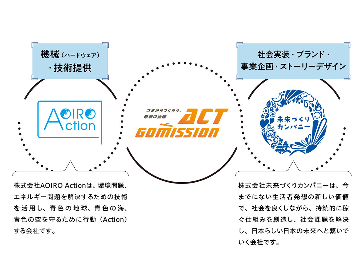 「ACT GOMISSION」は、これらの課題を一体的に捉え、社会の中で“不要なゴミ”から、社会に“必要なエネルギー”を生み出す革新的な技術を活用しています。