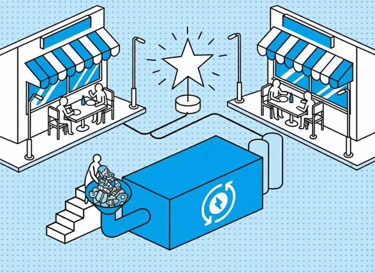 解決策として、飲食店街単位で本技術を導入し、店舗から出る生ごみや廃プラスチックなどの廃棄物をその場で処理し、エネルギーに変換することで、街灯やイルミネーションなどに活用することができます。 また、「ゴミが電気(灯り)に変わる」ことを可視化するアート演出×環境意識を融合した体験価値を創出することで、街そのものが循環型エネルギーの象徴となり、地域のブランディングにも繋がります。